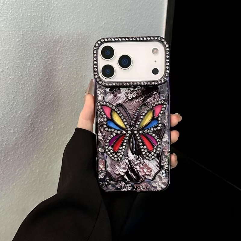 • Electroplated Hollowed-out Rhinestone Butterfly Phone Case For iPhone
